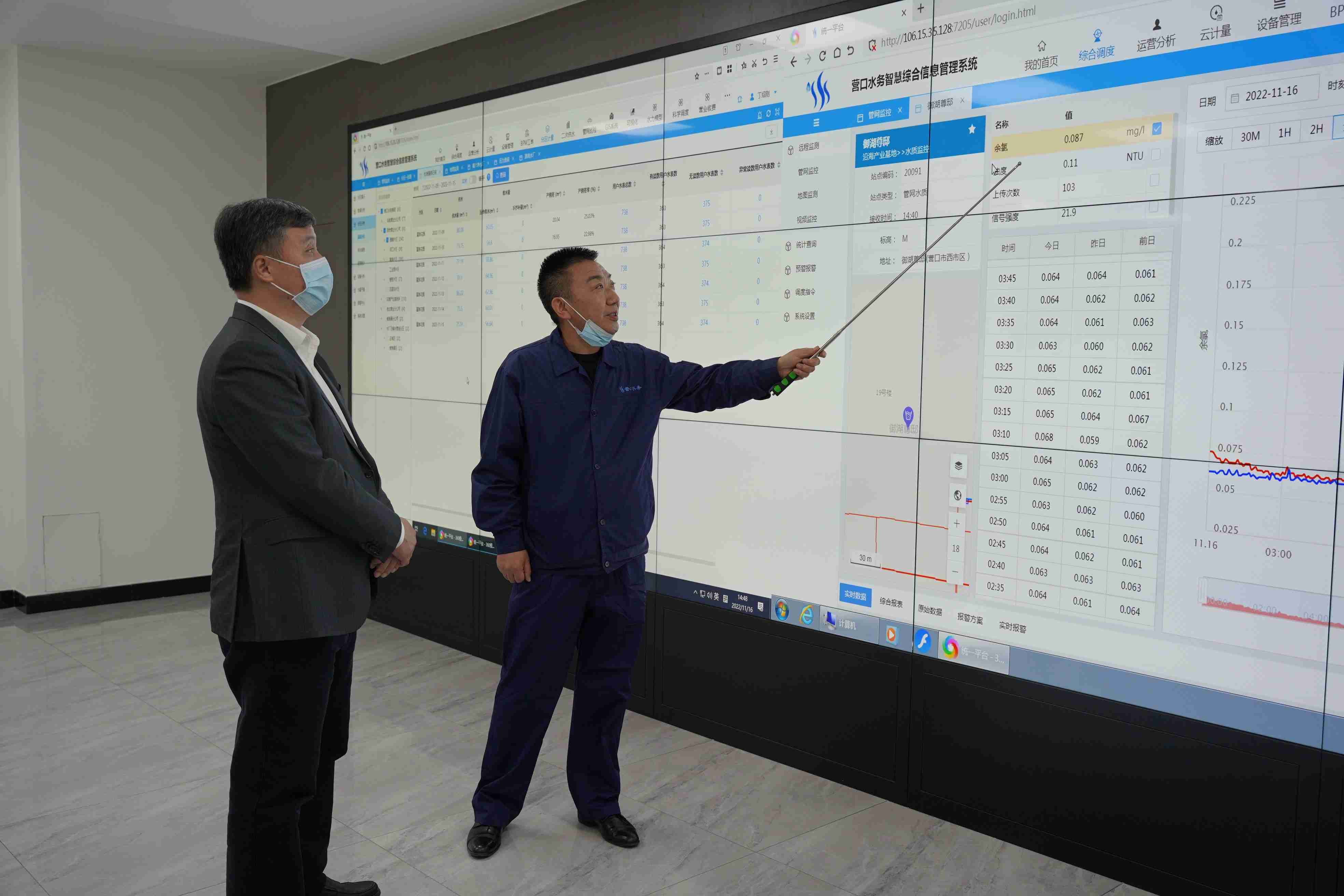 姚華明對智慧水務(wù)平臺的建設(shè)給予充分肯定,并詳細(xì)詢問了水源水廠、日供水能力、供水應(yīng)急保障及企業(yè)經(jīng)營情況,他指出,水務(wù)集團(tuán)基礎(chǔ)好、底子硬,在智慧水務(wù)的創(chuàng)新及研發(fā)方面始終不遺余力,智慧水務(wù)系統(tǒng)將對未來供水管網(wǎng)系統(tǒng)大數(shù)據(jù)分析及管網(wǎng)現(xiàn)代化管理提供更精準(zhǔn)的信息,為企業(yè)精細(xì)化管理提供參考依據(jù),相信水務(wù)集團(tuán)將為城市發(fā)展提供強(qiáng)大供水支撐。同時對今后工作提出三點(diǎn)要求:一要全力做好供水安全保障工作,確保水量足、水壓穩(wěn)、水質(zhì)優(yōu);二要全面提升服務(wù)效能,創(chuàng)新服務(wù)舉措,優(yōu)化服務(wù)方式,打造專業(yè)服務(wù)隊伍,不斷提升市民滿意度;三要全力推動數(shù)字化發(fā)展,加快智慧水務(wù)平臺建設(shè)進(jìn)程,真正用數(shù)字服務(wù)民生,全面打造現(xiàn)代化國有企業(yè)。